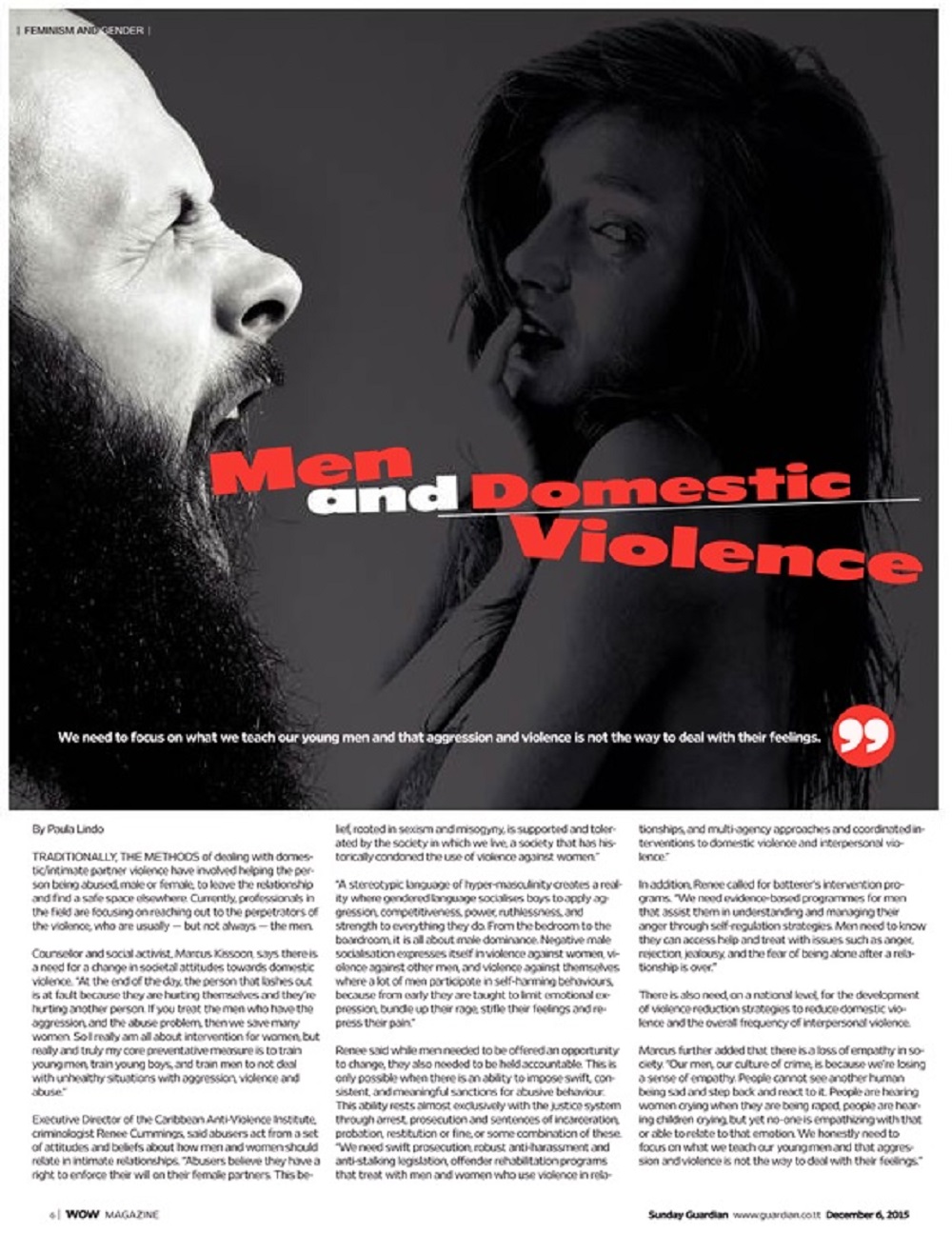 Counselor and social activist, Marcus Kissoon, says there is a need for a change in societal attitudes towards domestic violence. “At the end of the day, the person that lashes out is at fault because they are hurting themselves and they’re hurting another person. If you treat the men who have the aggression and the abuse problem, then we save many women. So I really am all about intervention for women, but really and truly my core preventative measure is train young men, train young boys, and train men to not deal with unhealthy situations with aggression, violence and abuse.”
