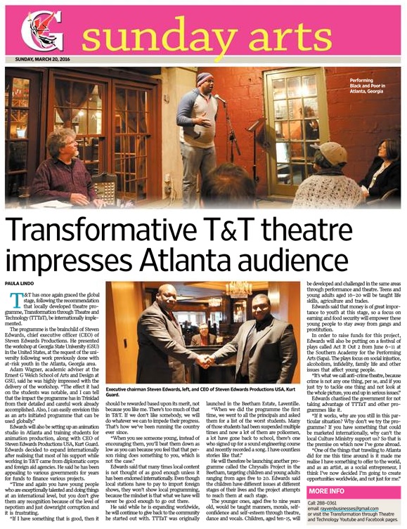 T&T has once again graced the global stage, following the recommendation that locally developed theatre program, Transformation through Theatre and Technology (TTTaT), be internationally implemented. The program is the brainchild of Steven Edwards, Chief Executive Officer (CEO) of Steven Edwards Productions.