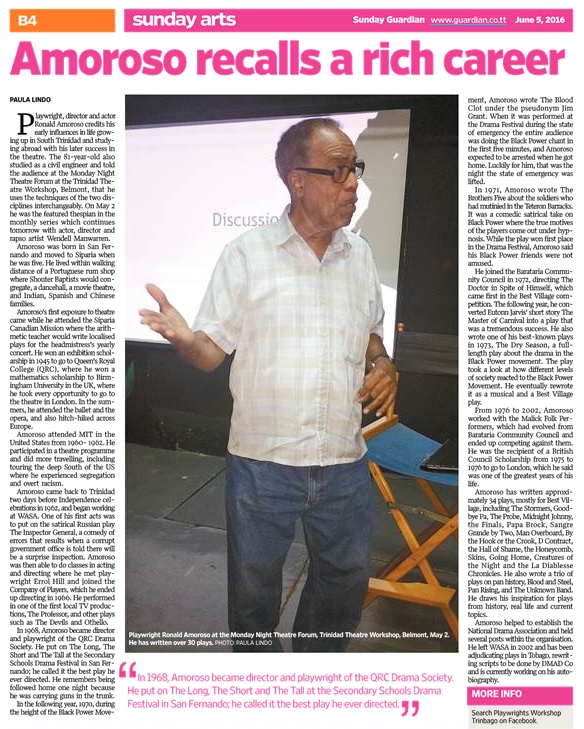 Amoroso helped to start the WASA Sport and Cultural Club and WASA fete. Went to Grenada just after the coup, combined Gairy and Papa Doc. The play failed, because it was too serious.