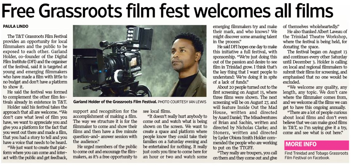 The T&T Grassroots Film Festival (TTGFF) provides an opportunity for local film-makers and the public to be exposed to each other.
