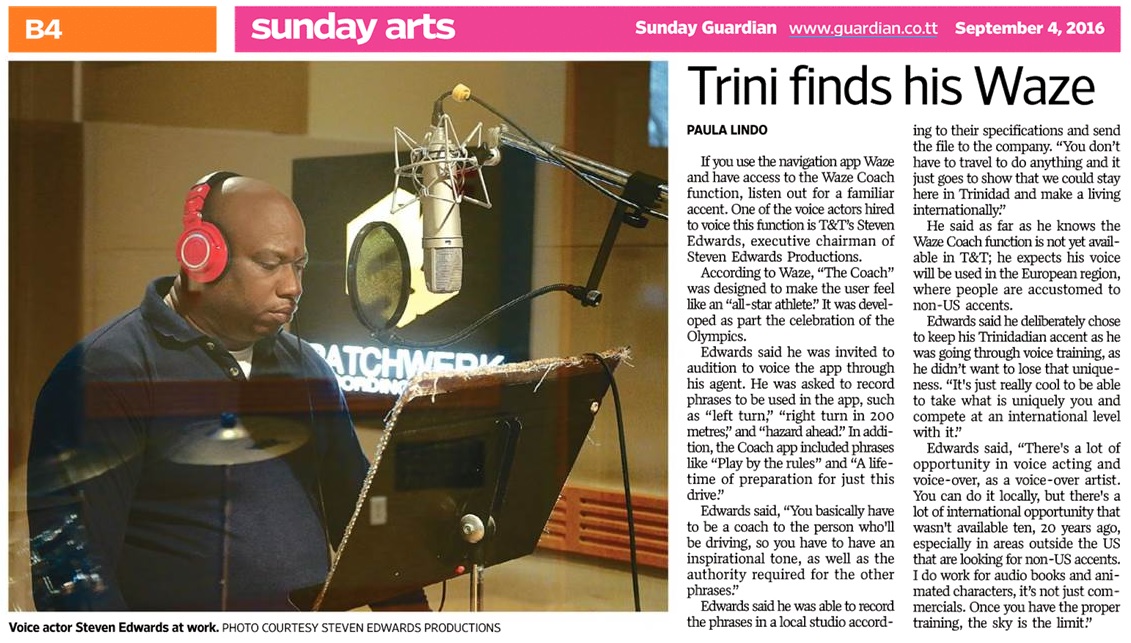If you use Waze by Google and have access to the Waze Coach function, listen out for a familiar accent. One of the voice actors hired to voice this function, which was developed as part of Olympic celebrations, is T&T’s Steven Edwards, Executive Chairman of Steven Edwards Productions.
