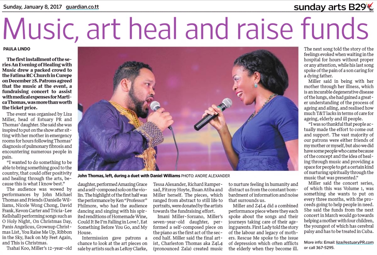 The first installment of the fundraising series “An Evening of Healing with Music” drew a packed crowd to the Fatima RC Church in Curepe on December 28.