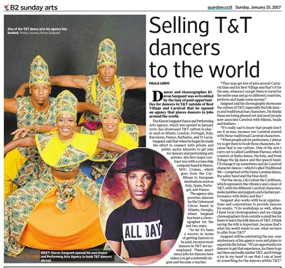 Dancer and choreographer Kieron Sargeant was so troubled by the lack of paid opportunities for dancers in T&T outside of Best Village and Carnival that he opened an agency which places dancers in jobs around the world.