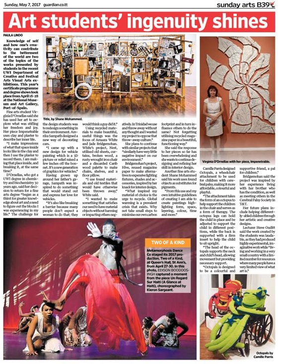 Knowledge of yourself and how your creativity can contribute to the betterment of the world around you are some of the topics creative persons confront as they develop their potential. This was evident in the exhibits presented by students in the recent UWI Department of Creative and Festival Arts Final Year Art Exhibition 2017 at the National Museum and Art Gallery, Port of Spain.