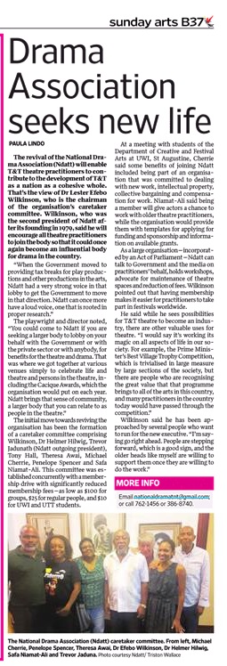 The revival of the National Drama Association of T&T (NDATT) will enable T&T theatre practitioners to contribute to the development of T&T as a nation as a cohesive whole. That’s the view of Dr. Lester Efebo Wilkinson, who is the Chairman of the organization’s caretaker committee. Wilkinson, who was the second President of NDATT after its founding in 1979, said he would encourage all theatre practitioners to join NDATT so that it could once again become an influential body for drama in the country. “When the Government moved to providing tax breaks for play productions and other productions in the Arts, NDATT had a very strong voice in that lobby to get the Government to move in that direction. NDATT can once more have a loud voice, one that is rooted in proper research.”