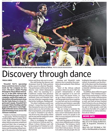 Wasafoli Trinidad and Tobago’s upcoming dance and drum show is a landmark for the company in two ways. “Ajuba: Paying Homage to Those Before and After Us” is the fifth African Folk Ballet production put on by the company, and its first major collaboration with performers from the Ijo Vudu Dance Company from Nigeria and Canada.