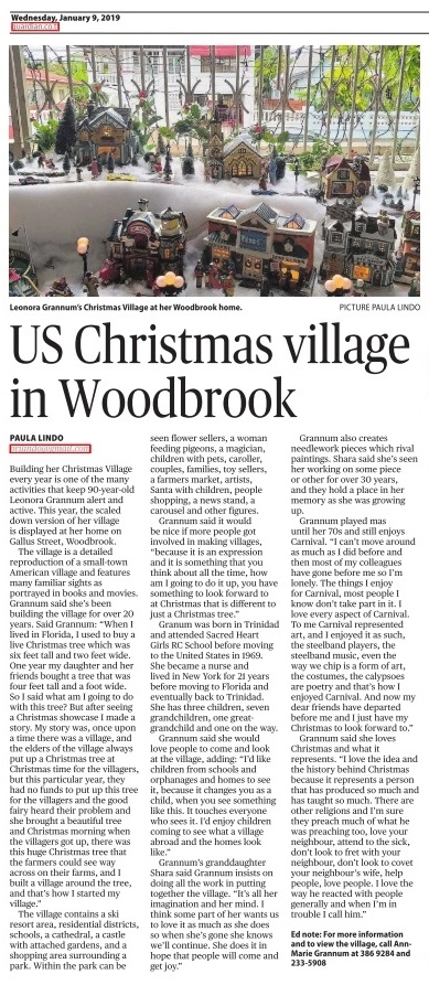 Building her Christmas Village every year is one of the many activities that keep 90-year-old Leonora Grannum alert and active. This year, the scaled down version of her village is displayed at her home on Gallus Street, Woodbrook, Port-of-Spain.