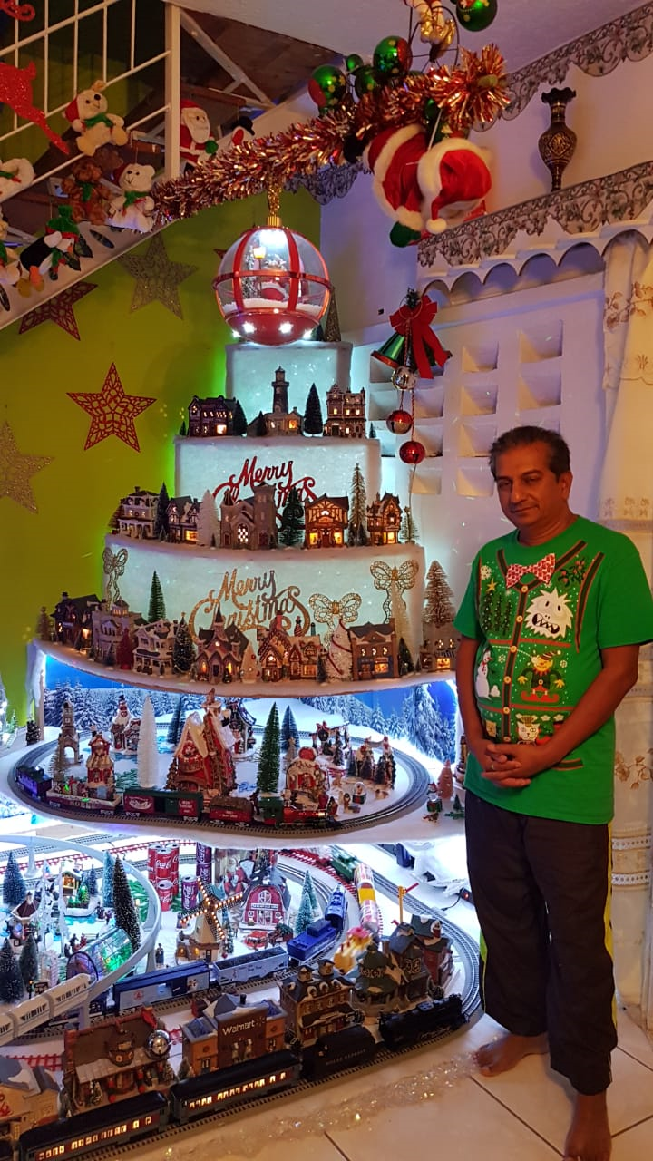 Kalloo constructs the showcase with the aid of his wife, Rampy Ramlakhan-Kalloo, beginning in November. “It’s stages you’ve got to go through in order to build something like this. She does the Christmas tree, then I do the step form, then we focus on the trains. It takes about a month to do, it takes a long time, every day two or three hours. You need time and patience to do things like this.”