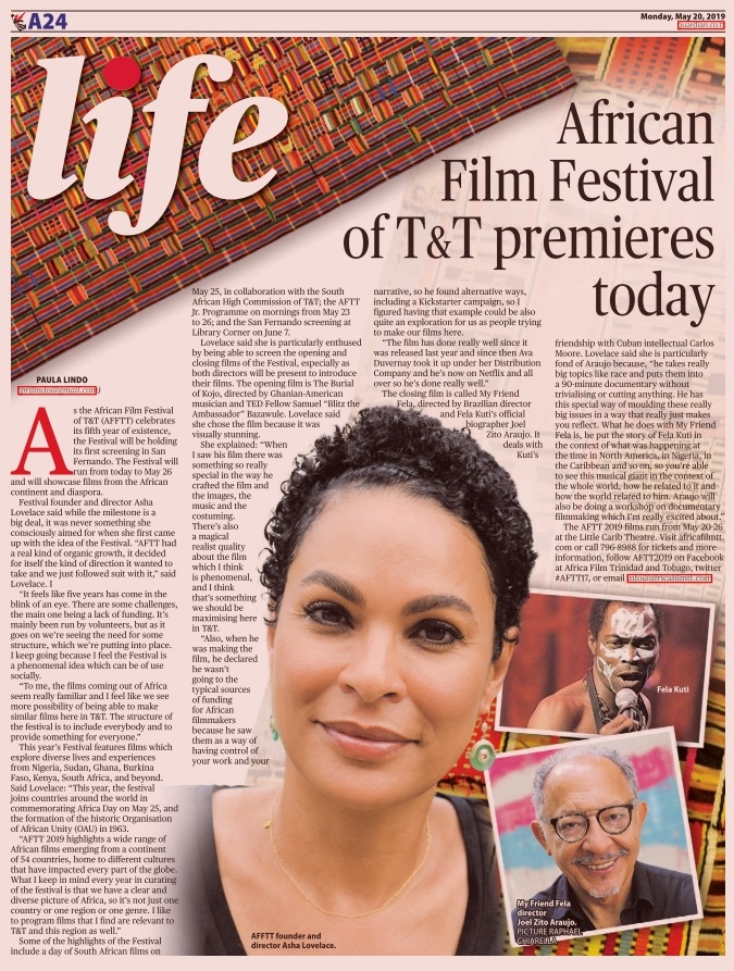 The AFTT 2019 films run from May 20-26 at the Little Carib Theatre. Visit africafilmtt.com or call 796-8988 for tickets and more information, follow AFTT2019 on Facebook at Africa Film Trinidad and Tobago, twitter #AFTT17, or email info@africafilmtt.com.