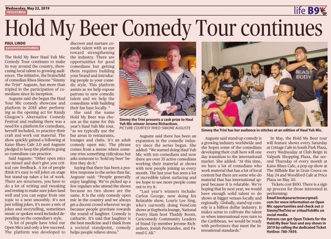 The Hold My Beer Haul Yuh Mic Comedy Tour continues to make its way around the country, showcasing local talent to growing audiences. The initiative, the brainchild of comedian Rhea-Simone Auguste, has more than tripled in participation of comedians since its inception.