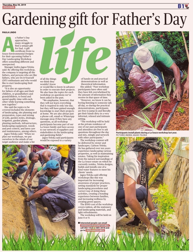 Manager Indira Jagoo-Teloka said by offering this workshop, the company “is targeting all the fathers, and persons who are like fathers, who are Do-it-Yourself (DIY) enthusiasts and who would like to start landscaping their property. It is also an opportunity for fathers of all ages and their children, or grandfathers and grandchildren, to bond and spend quality time with each other while learning something new together.”